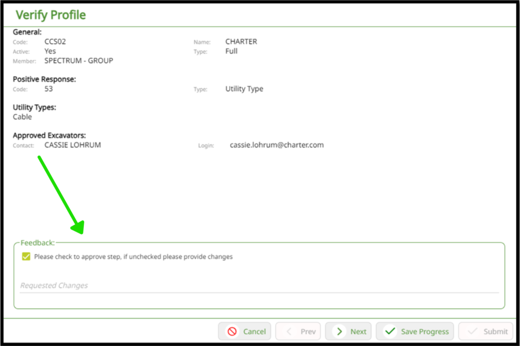 The first box you will be verifying is the general information box. This includes general information, positive response information, utility types, and approved excavators.